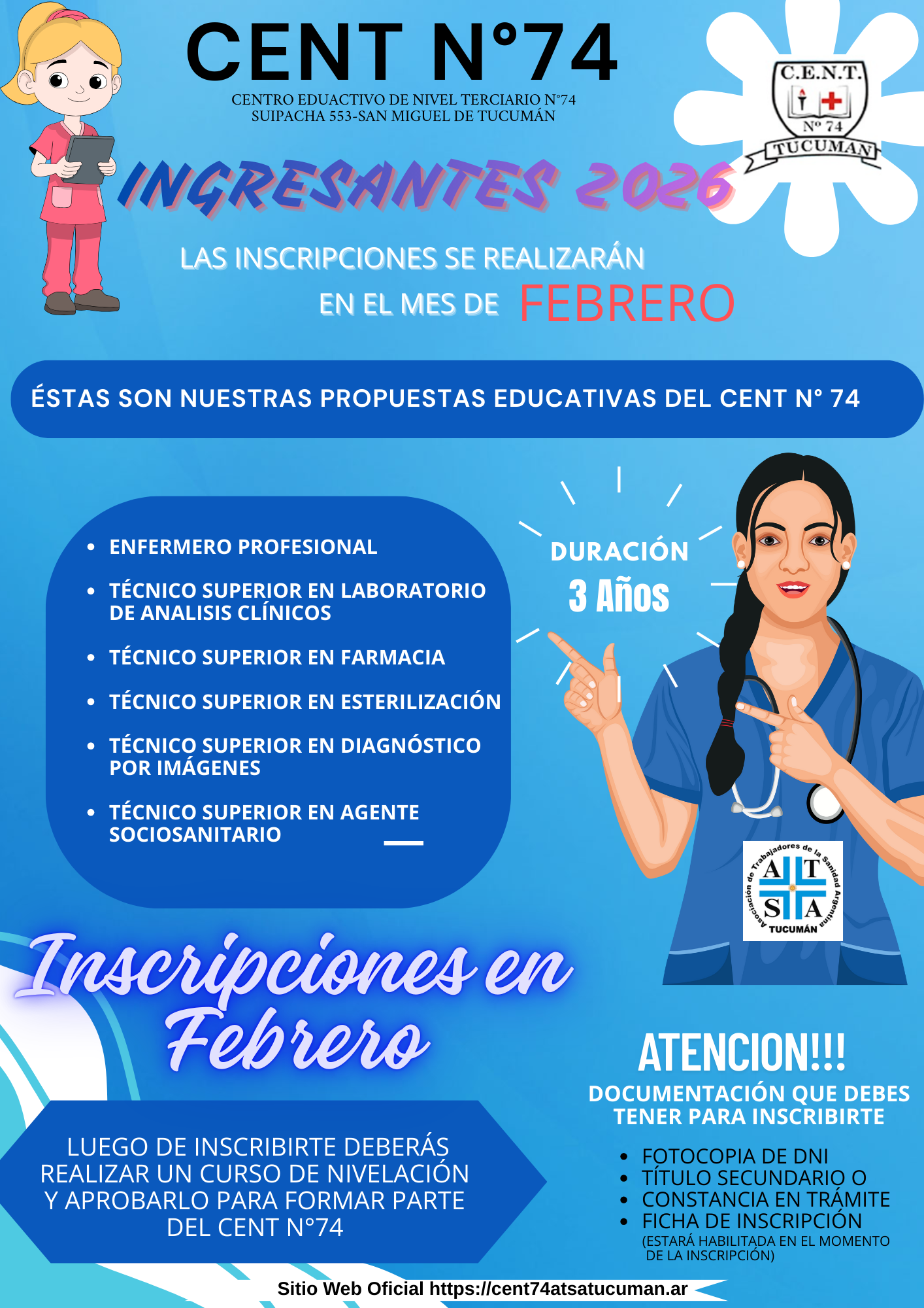 Recordá consultar toda la información Aquí en nuestro Sitio Web Oficial https://cent74atsatucuman.ar/